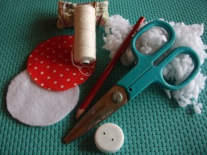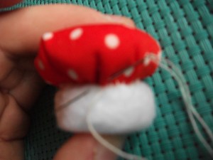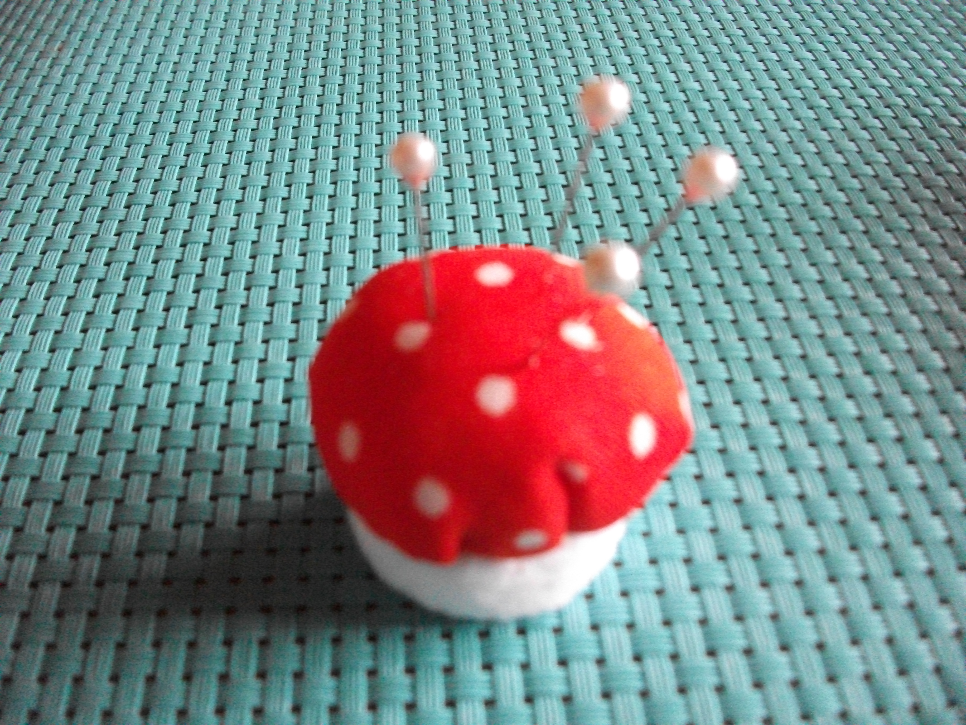In den Weiten des www habe ich eine witzige Anleitung entdeckt für kleine Nadelkissen. Im Originaltutorial wird daran noch ein kleiner Kordelgummi befestigt, so dass das Nadelkissen wie eine Art Fingerring getragen werden kann und nicht zwischen den Stoffbergen verschwindet. Leider ist das Gummi noch nicht eingetroffen, so dass ich den ersten Pilz ohne gebastelt habe.