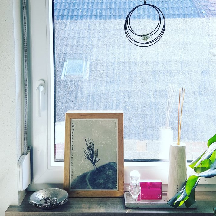 #iicnevershown So einiges in meiner Wohnung habe ich – aus unterschiedlichen Gründen – noch nie gezeigt. Unter anderem dieses Bild eines Kiefernzweiges und die Tillandsie, die im [völlig verstaubten] Fenster schwebt.