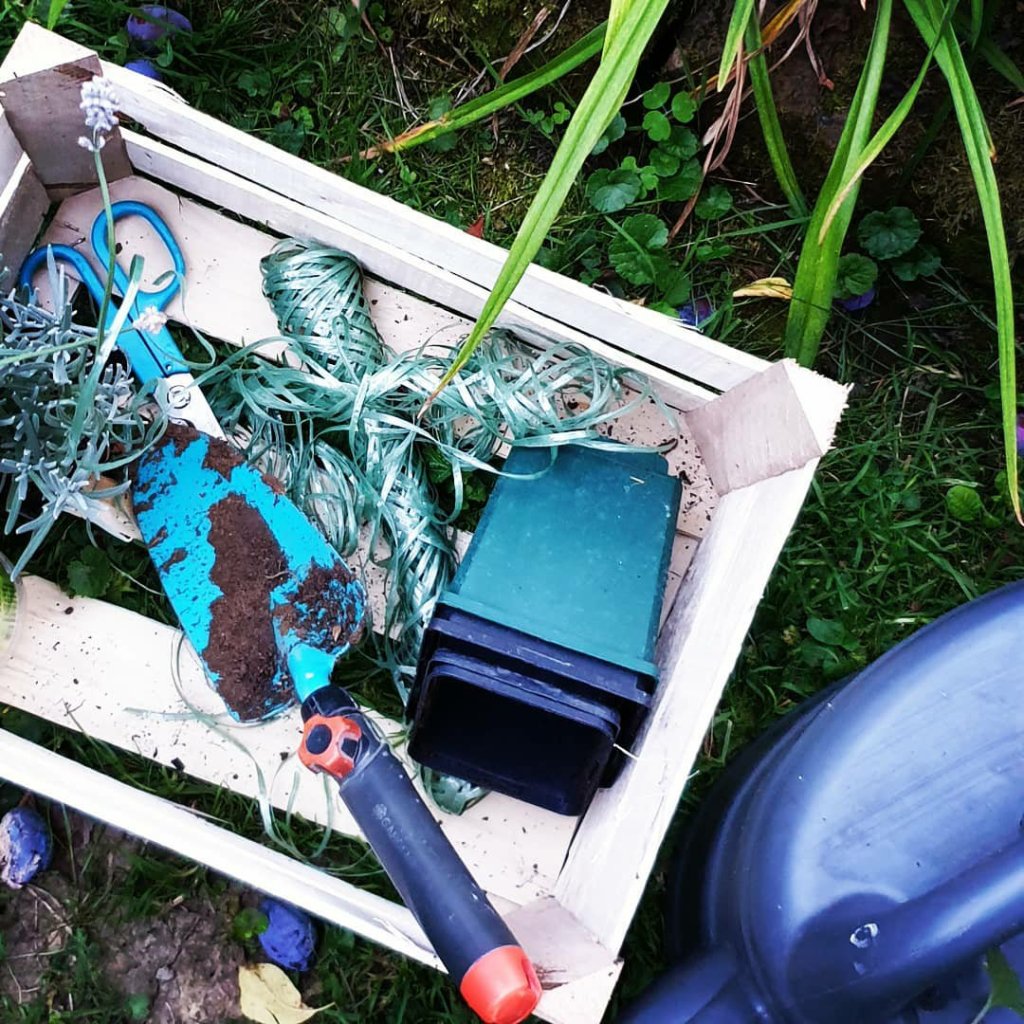 Momentan nutze ich eine Holzkiste, um meine Gartengeräte von einem Fleck zum Anderen zu bringen. Diese möchte ich jedoch durch eine Vintagekiste aus Metall ersetzen, da aus dieser im Gegensatz zur Holzkiste nichts fallen kann.