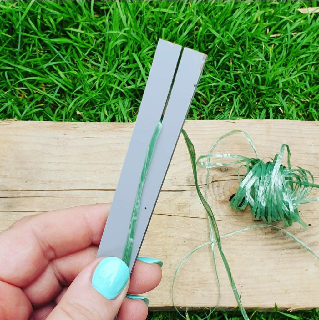Nun kommt der simple Teil des DIYs – die Bindeschnur wird auf die Spindel gewickelt. Dazu einfach ein Stück Schnur durch den Schnitt ziehen und dann wickeln, wickeln, wickeln…