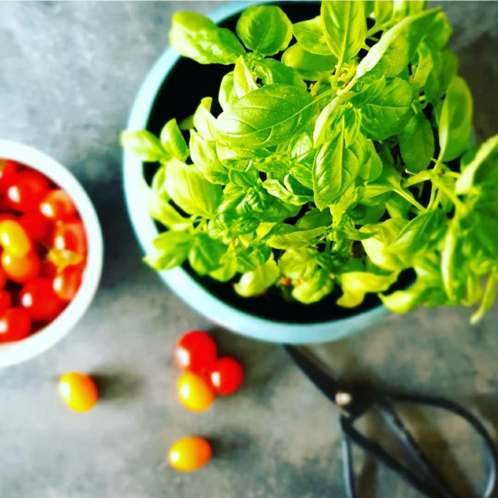 Gerade jetzt gibt es wirklich ganz viele tolle Tomaten, die umwerfend aromatisch und süß schmecken. Für meinen Dip habe ich eine Mischung unterschiedlicher Cocktailtomaten – rote, gelbe und schwarze – verwendet. Das schaut einfach so schön aus in der gusseisernen Pfanne. Dazu gibt es selbst gemachtes Basilikum und feinen Mozzarella, leckeres Olivenöl und bestes Brot zum dippen.
