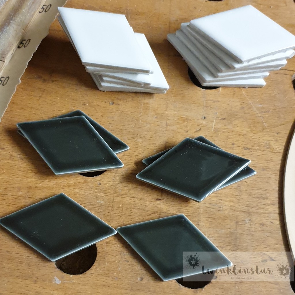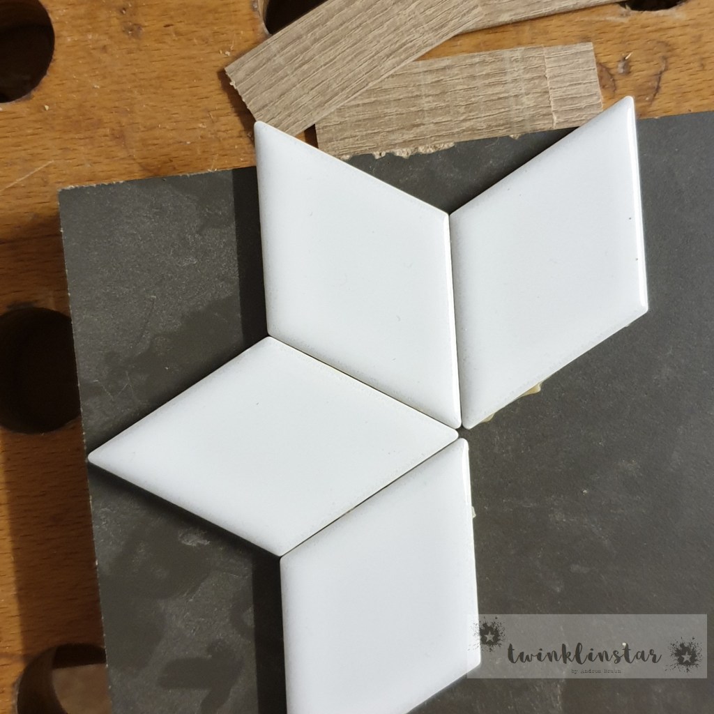 Werbung ohne Auftrag. Bereits im Jahr 2019 habe ich diese hübschen Untersetzer aus Fliesen gemacht. Irgendwie ging die Anleitung dann im Vorweihnachtstrubel unter. Als dann über die sozialen Medien die Bilder wieder aufploppten [„Möchtest Du die Erinnerung von vor einem Jahr teilen?“], habe ich mich an die Bilderserie erinnert, die ich während der Fertigung machte. Im November bei Kunstlicht mit dem Handy gemacht ist die Qualität nicht die allerbeste, allerdings mag ich das Ergebnis umso lieber…