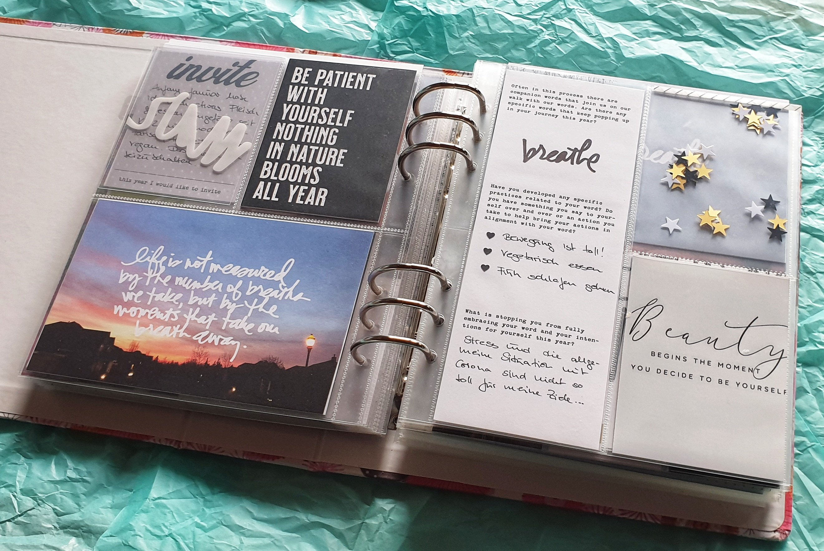 Die hübschen Karten mit den Prompts „Reset“, „Refocus“, „Readjust“ und „Restart“ bekam ich von meiner lieben Freundin Frau Pony geschenkt. Sie hat mich damit total überrascht und die Kärtchen passen einfach perfekt in dieses Album!
