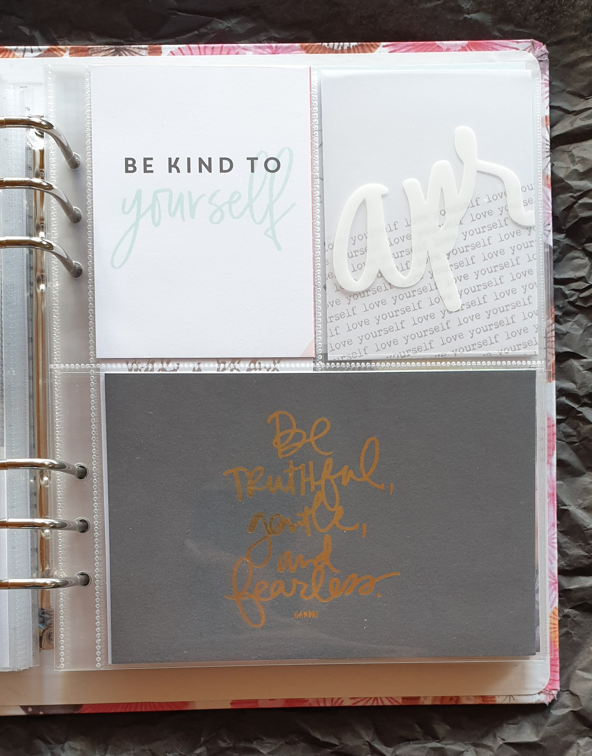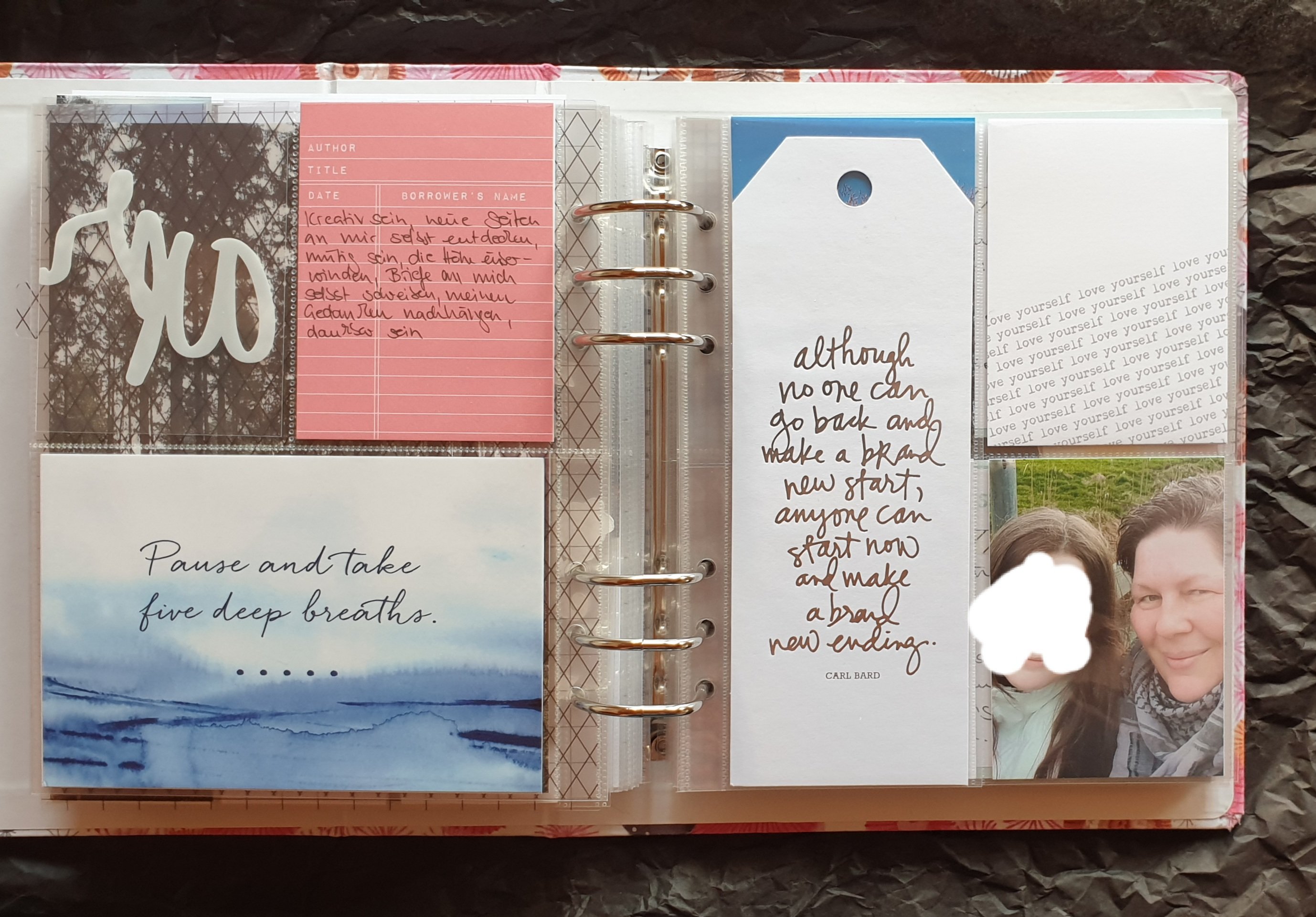 Die letzte Seite ist dieses Mal kein Foto, sondern ein Brief an mich selbst. Auch hier ist die Grundlage wieder eine .pdf-Datei von Krystal. Es ist gar nicht so einfach, an sich selbst eine liebevolle Nachricht zu verfassen. Eine schöne Übung…