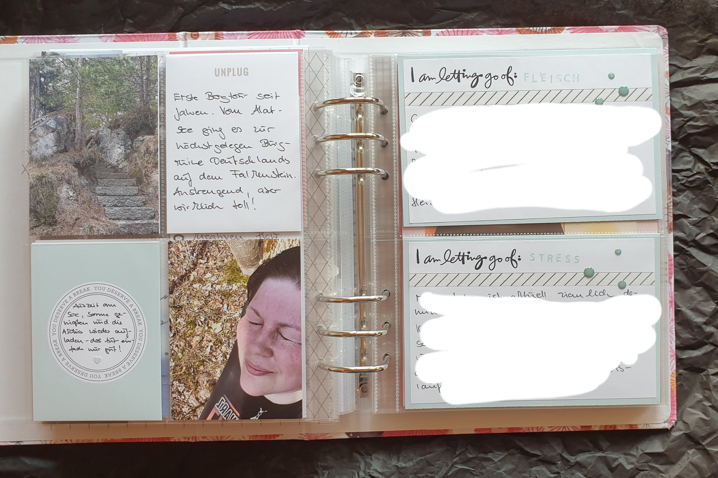 Tatsächlich ist mein Album eine Mischung aus Alltäglichem [also fast eine minimalistische Form von Project life] und den Aufgabestellungen aus dem Workshop. Im April ging es ums Loslassen. Zusätzlich hatte ich recht spontan noch einen Online-Workshop von Liz Lamoreux gebucht. Ich liebe es im Moment sehr, mir Gedankenanstöße von Außen zu holen. Allerdings bin ich mit dem Kurs noch längst nicht durch, manche Themen waren ziemlich emotional, anderes ist einfach dem Zeitmangel geschuldet….
