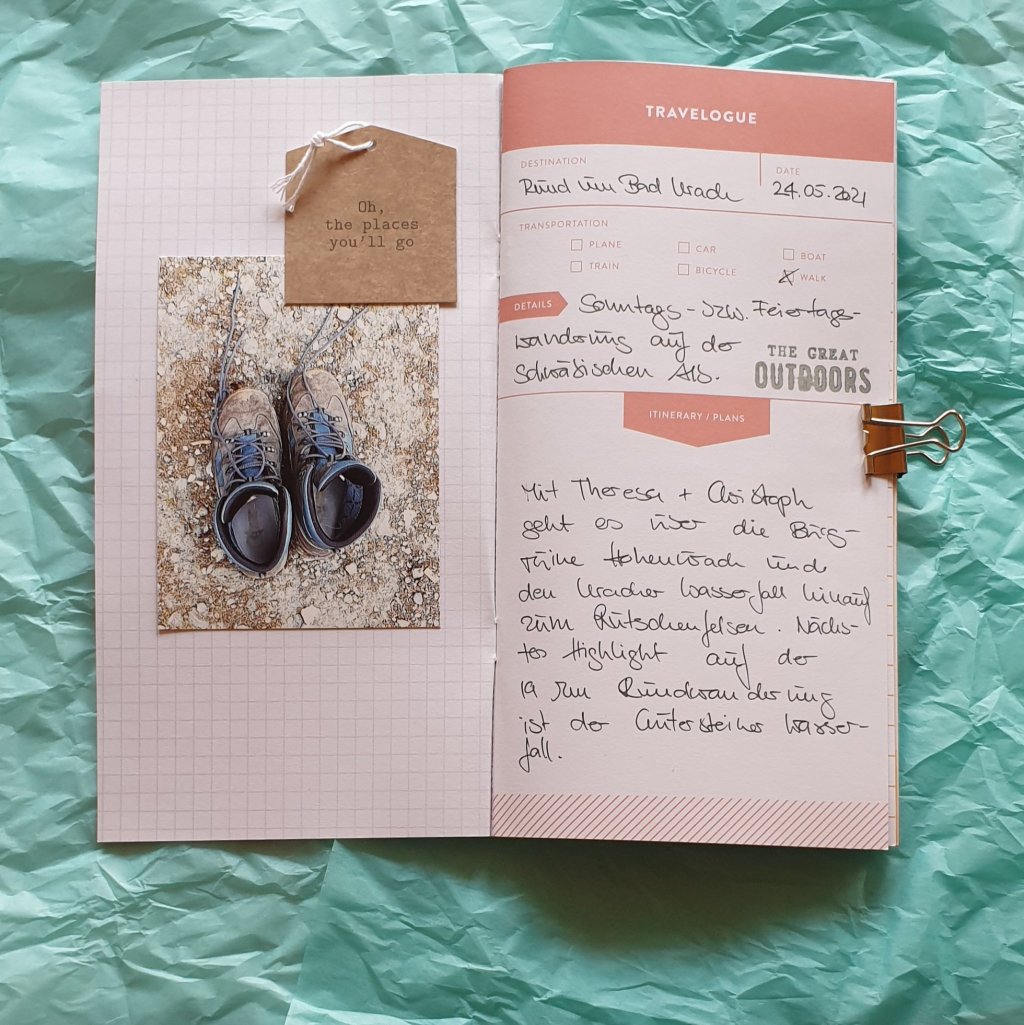 Werbung ohne Auftrag. Vor einigen Wochen habe ich mir ein tolles Scrapbooking-Kit bei Studio Calico gegönnt. Mit Produkten zum Thema Reisen kann man mich ja immer haben 😉 Was tun jedoch mit den tollen Sachen, wenn auch 2021 Fernreisen für mich persönlich noch nicht wieder in Frage kommen? Letztens habe ich ja einen umfangreichen Artikel zur Wanderung rund um Bad Urach geschrieben und diese Bilder haben nun in dem Travellers Notebook eine Heimat gefunden.