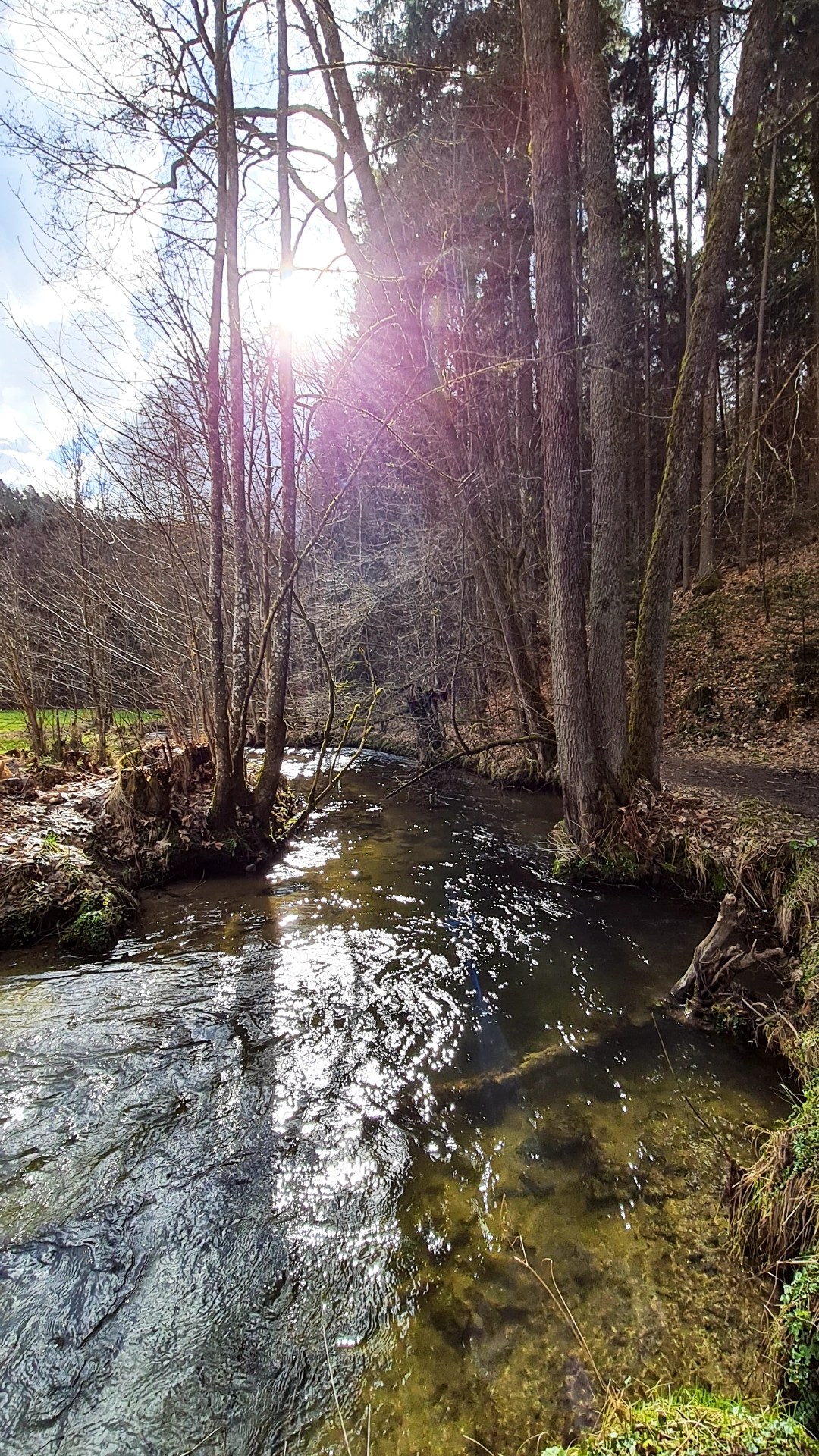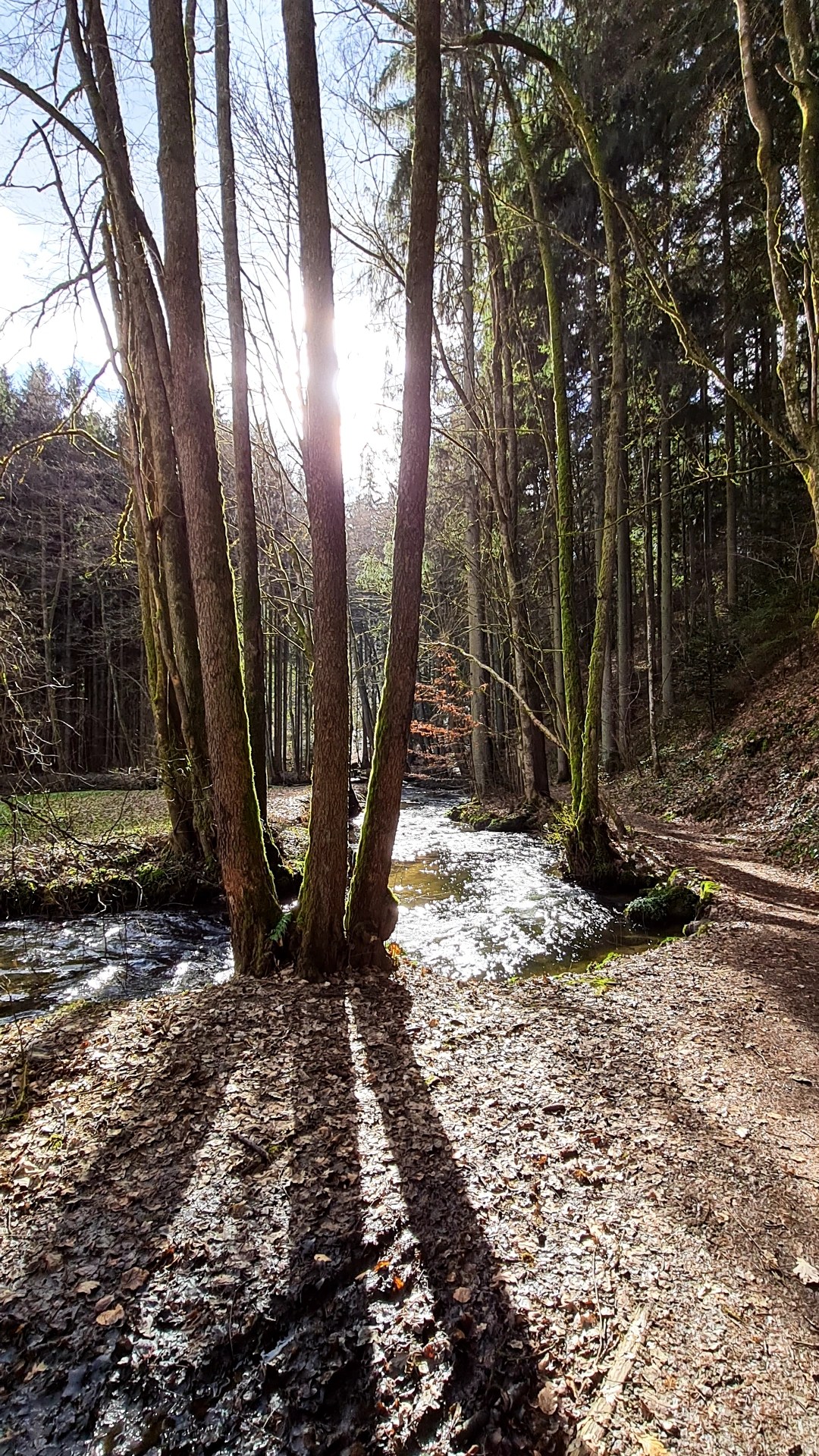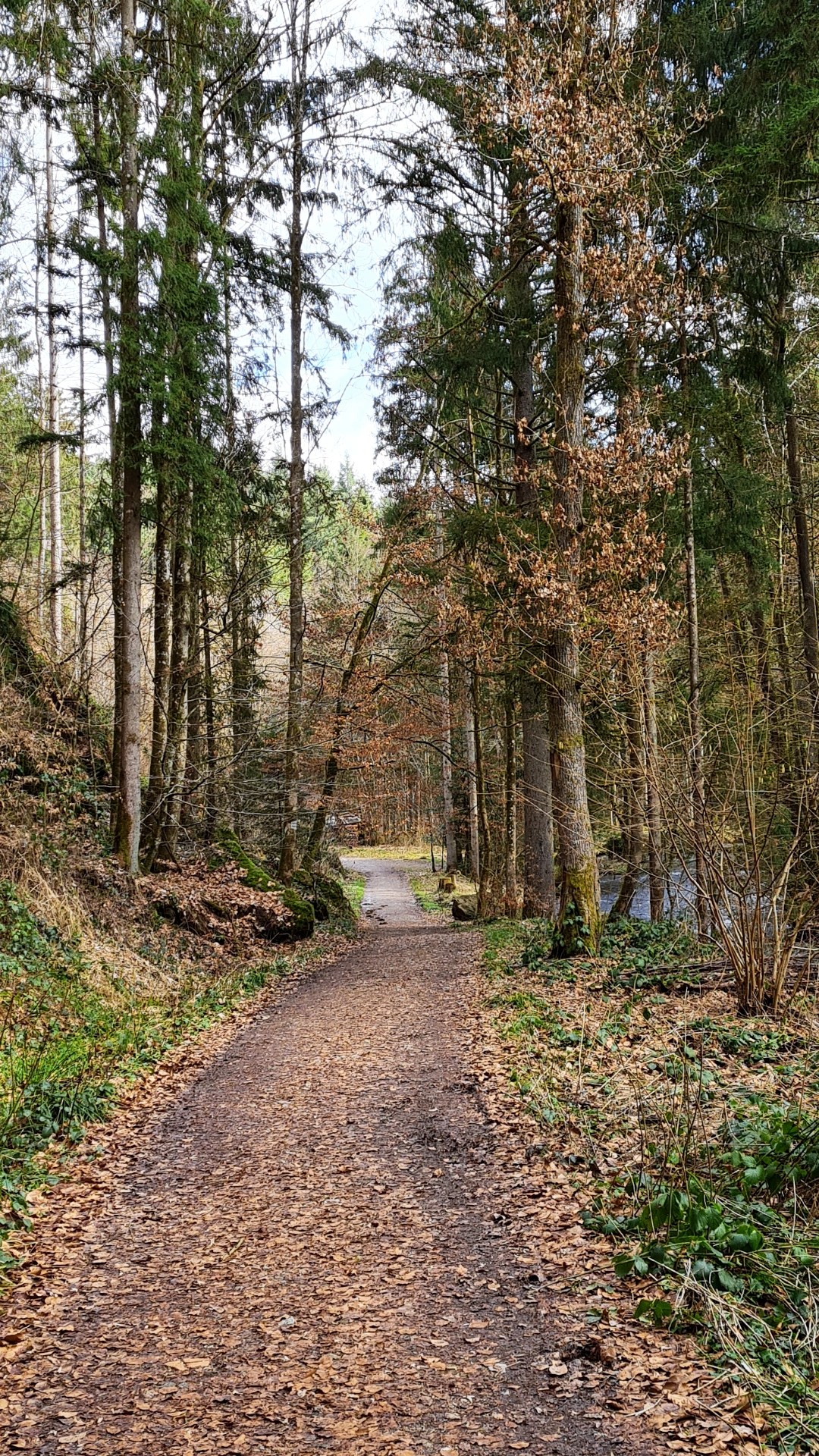 Für mich war es eine Wohltat, nach intensiven Diskussionen die Ruhe der Natur zu genießen. Es war bestimmt der Uhrzeit geschuldet, aber während des gesamten Spaziergangs traf ich gerade mal eine andere Person. Die Strecke lässt sich gut bewältigen, überwiegend handelt es sich um gut begehbare Forstwege. Ungefähr zur Hälfte der Strecke gibt es eine Wassertretanlage nach Pfarrer Kneipp – das macht im Sommer bestimmt richtig viel Spaß.