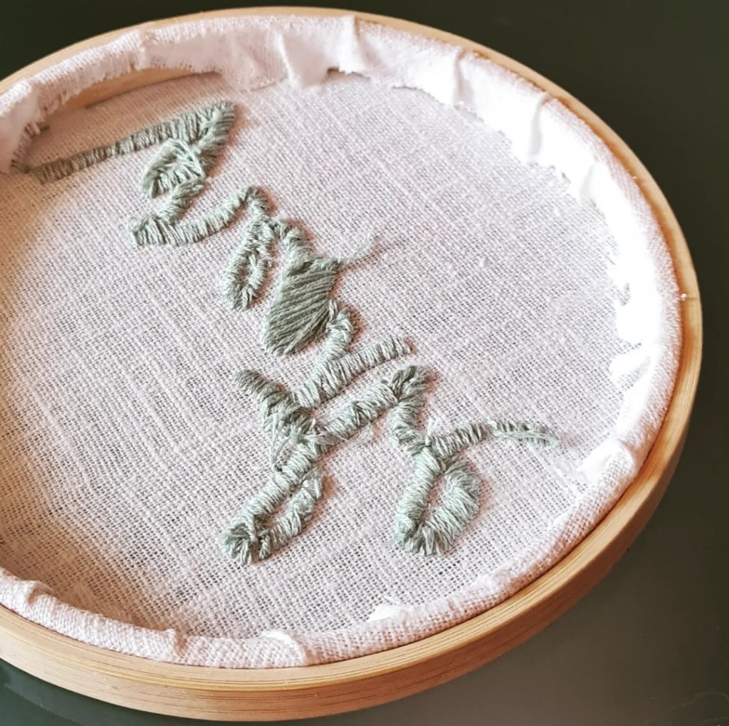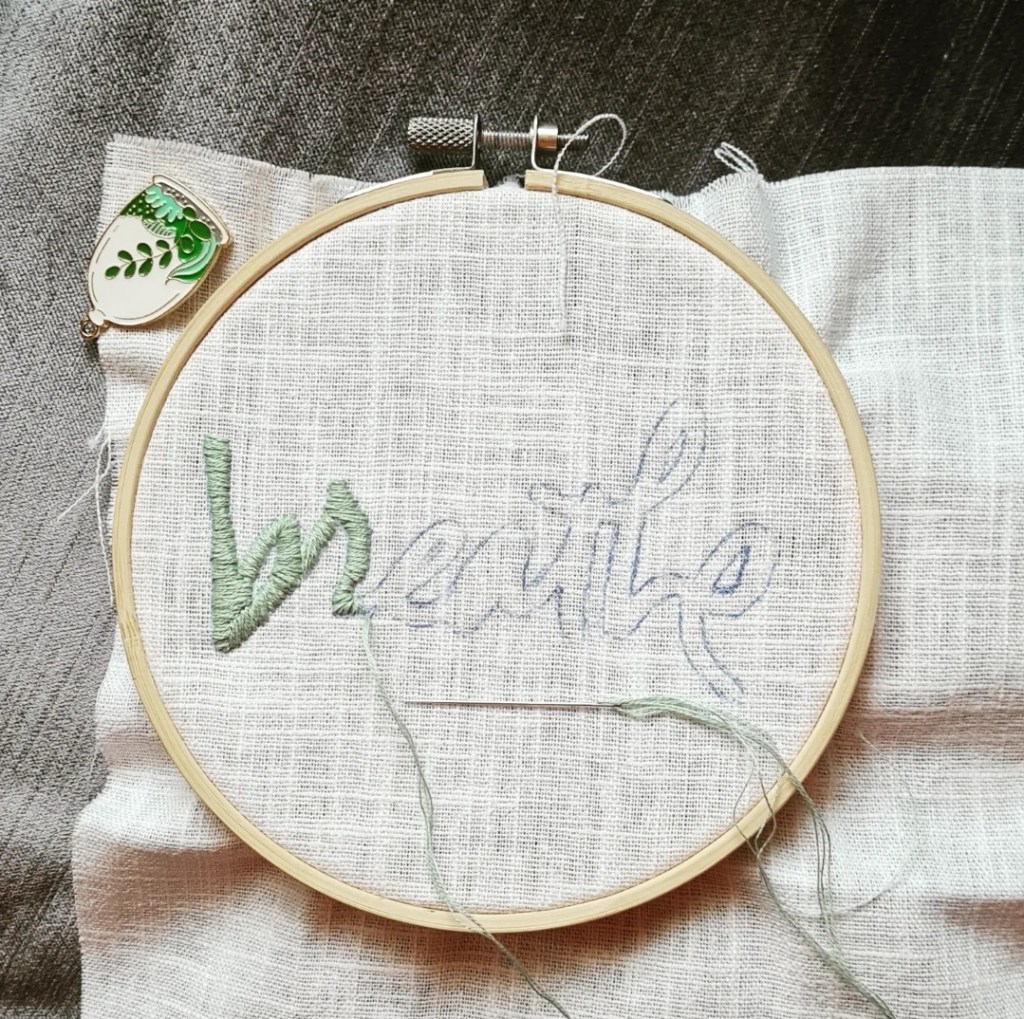 Werbung ohne Auftrag. Bereits im ersten Pandemiejahr habe ich mich mit moderner Stickerei beschäftigt. Dieses Anfangsprojekt liegt noch immer unvollendet in meinem Wohnzimmer. Ich hatte nämlich ziemlich begeistert damit begonnen, musste dann aber alles wieder auftrennen und ja, dann kam der Sommer, alles wurde etwas leichter und das Teil geriet ein Stück weit in Vergessenheit.