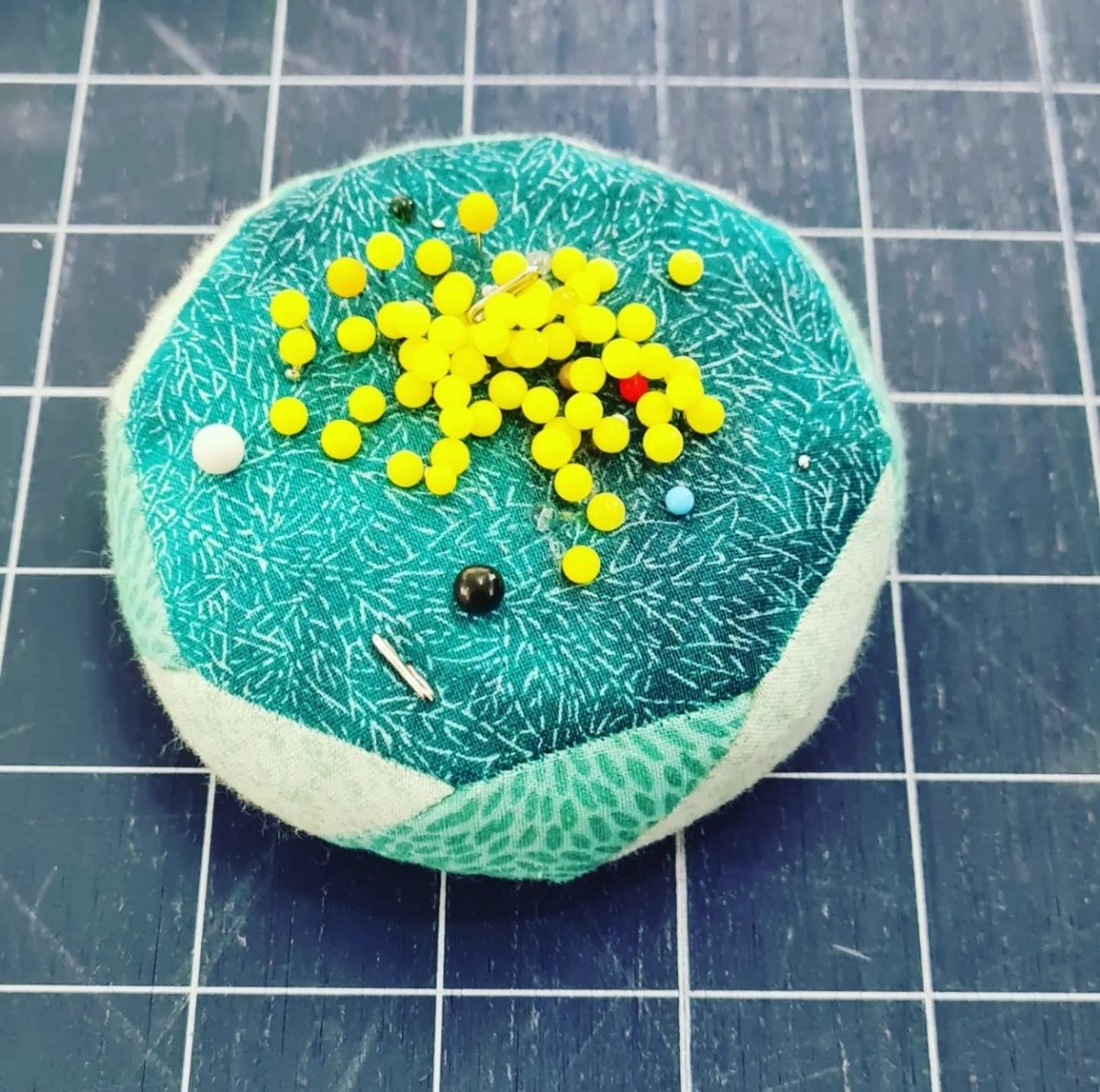 Aktuell plane ich an einem neuen Quilt herum…. im Patchworkshop des Vertrauens habe ich dieses hübsche Nadelkissen gesehen, das auch noch in meinem bevorzugten Farbschema gearbeitet ist. Ich glaube, ich muss mal meine Restekiste durchforsten…
