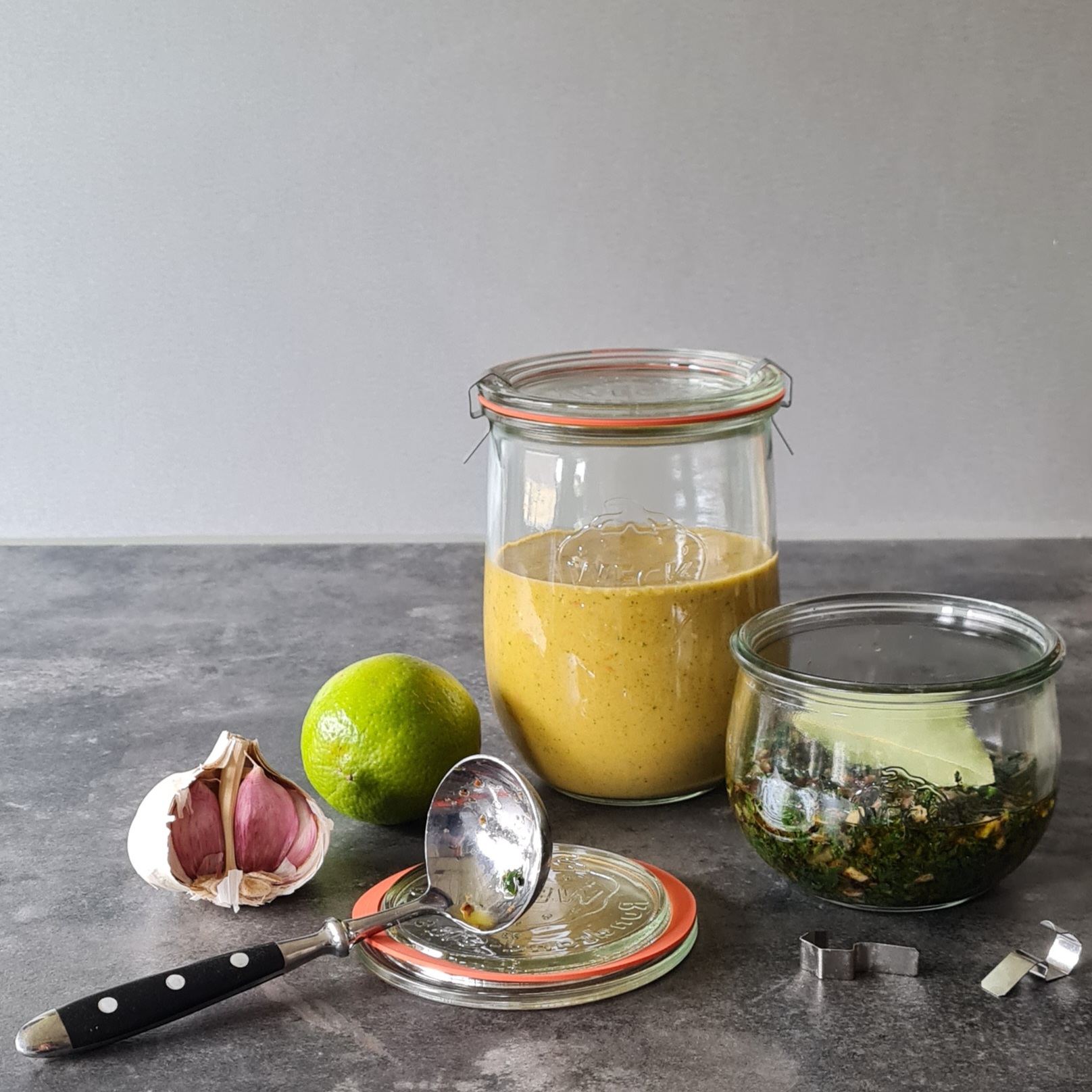 Die glatt pürierte Sauce ist flüssiger, lässt sich aber auch gut verwenden, um beispielsweise Grillkäse darin zu marinieren.