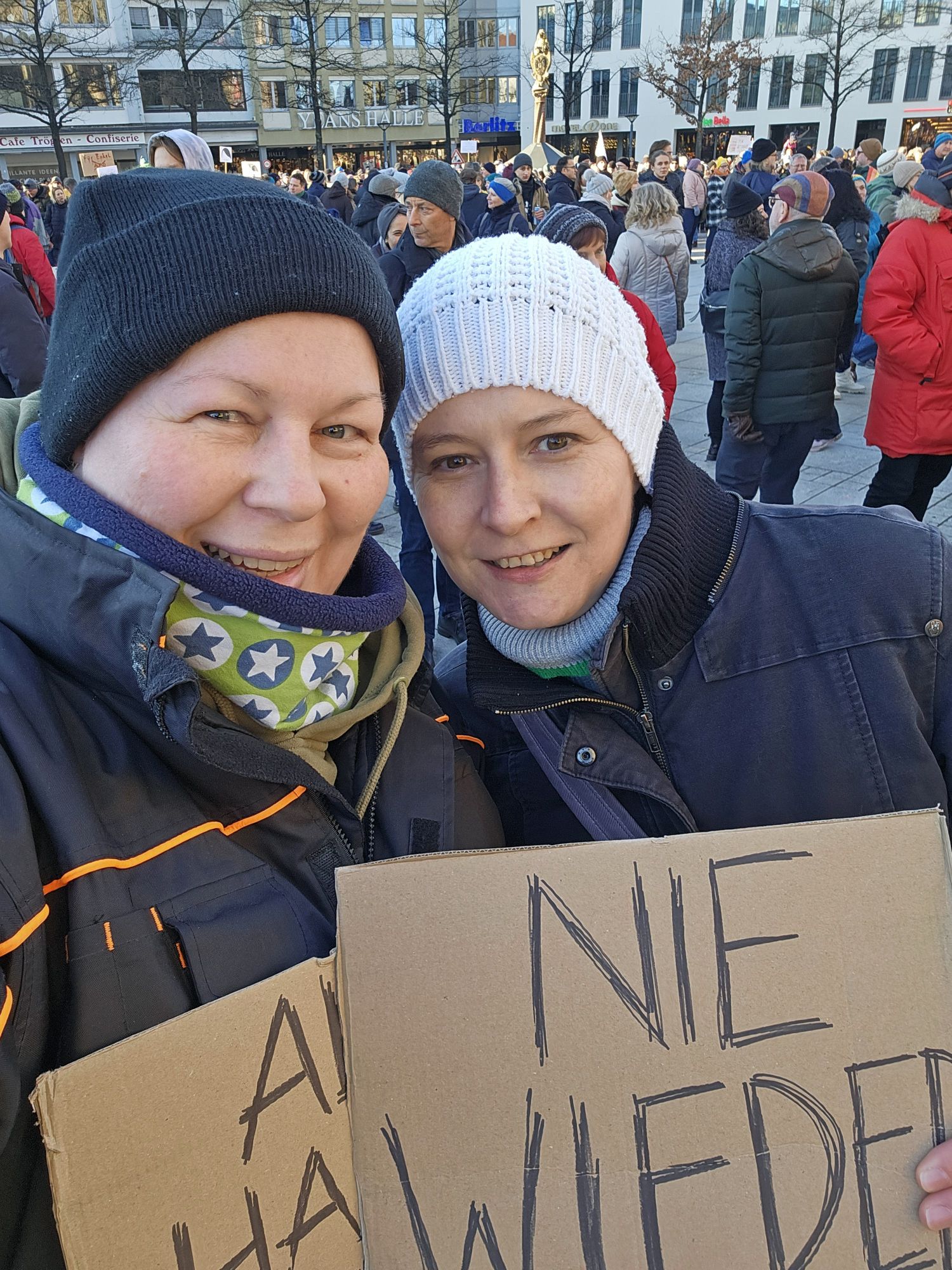 Mein Wunsch an alle, die das hier Lesen: engagiert Euch und geht wählen! Keine Macht den Nazis! Zeigt Euer Gesicht, seid laut und unbequem. Auch wenn ich keine eigenen Kinder habe; ich bin Tante, Schwester, Schwägerin, Tochter, Enkeltochter und möchte, dass meine Familie selbstbestimmt ohne Einschränkungen leben kann.