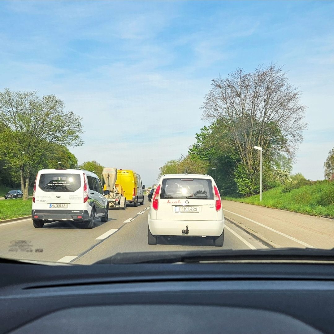 Apropos Auto: in der Unterführung hatte es so heftig geknallt, dass diese vollständig gesperrt war zur Aufnahme. Daher war auf der Bundesstraße Stau, passt ja auch am Freitagnachmittag zur besten Rush Hour.
