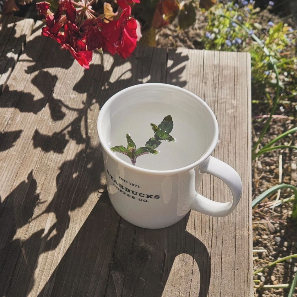 Tee mit frisch geernteter Pfefferminze. Das ist aktuell sowieso mein allerliebster Tee [der Salbei mag seit der Umpflanzaktion im Winter noch nicht so wie ich möchte].