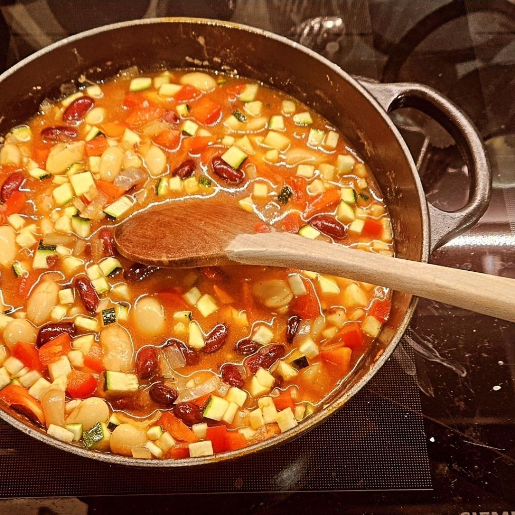Vorkochen für diese Woche – Gemüse-Bohnen-Eintopf und dazu wird es Reis geben.