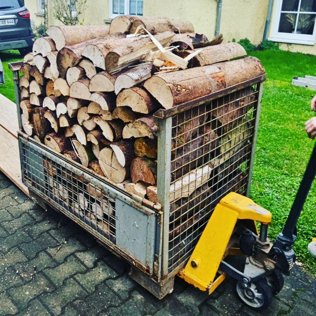 Meine Eltern haben jede Menge Brennholz gespalten. Ich hab dann kurz vor Ende der Mittagspause beim Verladen geholfen.