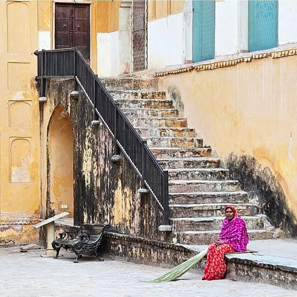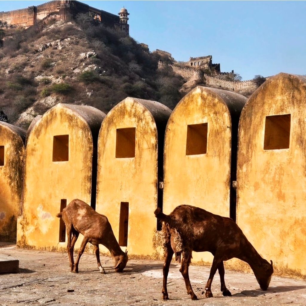 Das Amber Fort liegt oberhalbs Jaipur und ist wunderschön. Links ist das Mondtor zu sehen, gegenüber dann entsprechend das Sonnentor. Durch das Mondtor kamen traditionell Gäste, das Sonnentor war dem Maharadja vorbehalten.