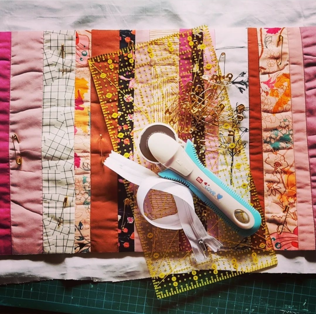 Werbung ohne Auftrag. Zuerst kam der Quilt Ravenbrook 2, dann die Stoffauswahl und dann blieben Reste über…. so in etwas lässt sich zusammen fassen, wie mein September an der Nähmaschine aussah. Zum jetzigen Zeitpunkt, als ich diesen Beitrag tippe, warte ich noch immer sehnsüchtig auf den Rückseitenstoff für den Quilt, der irgendwie alles ins Rollen brachte. Das Quilttop hängt schon längst am Schrank [um meine Quilts zu fotografieren, nutze ich gerne diese Hosenbügel zum Klemmen], aber wenn der Stoff von der Dealerin meines Vertrauens erst beim Großhändler bestellt werden muss, dann dauert das eben.