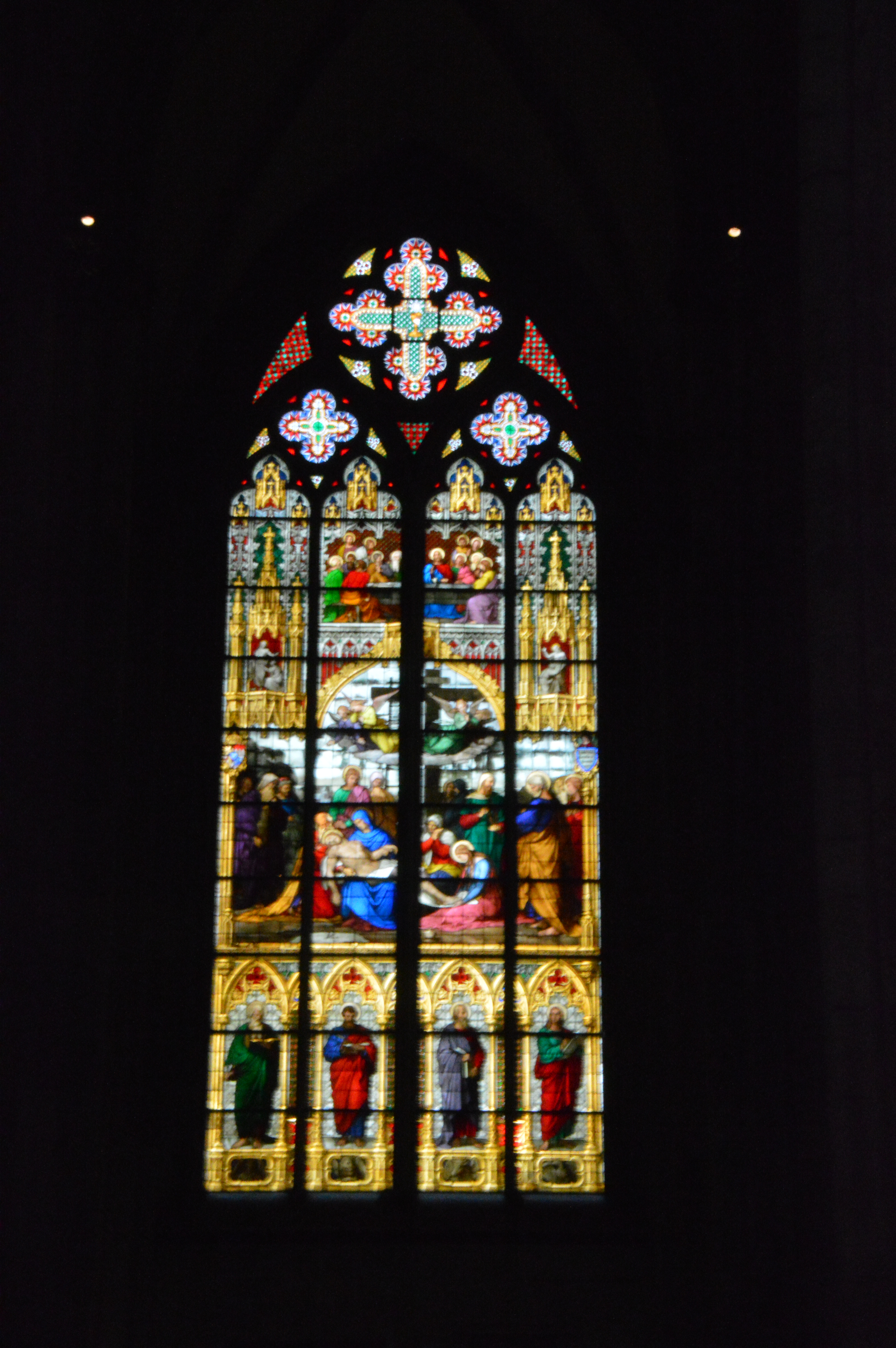 Beeindruckend sind für mich immer die Buntglasfenster, die hier natürlich eine enorme Höhe haben. Von außen sieht der Dom komplett grau aus, aber wenn man dann innen die Leuchtkraft der Fenster erlebt – wow…..