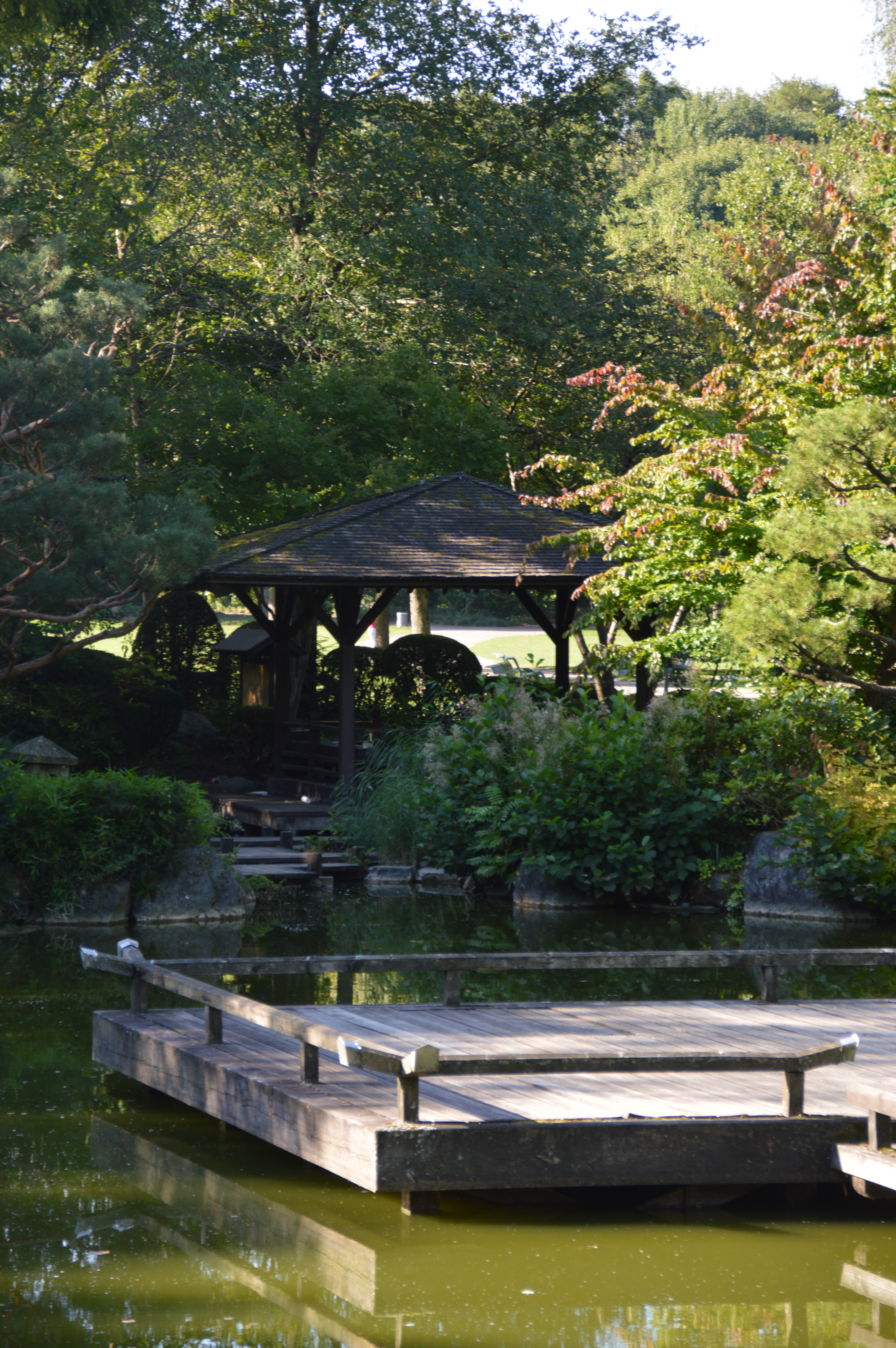 Hier seht ihr den japanischen Garten. Dieser wird durch ein großes Wasserbecken dominiert. Regelmäßig kommen japanische Gärtner nach München, um die Kollegen vor Ort zu schulen und zu unterstützen.