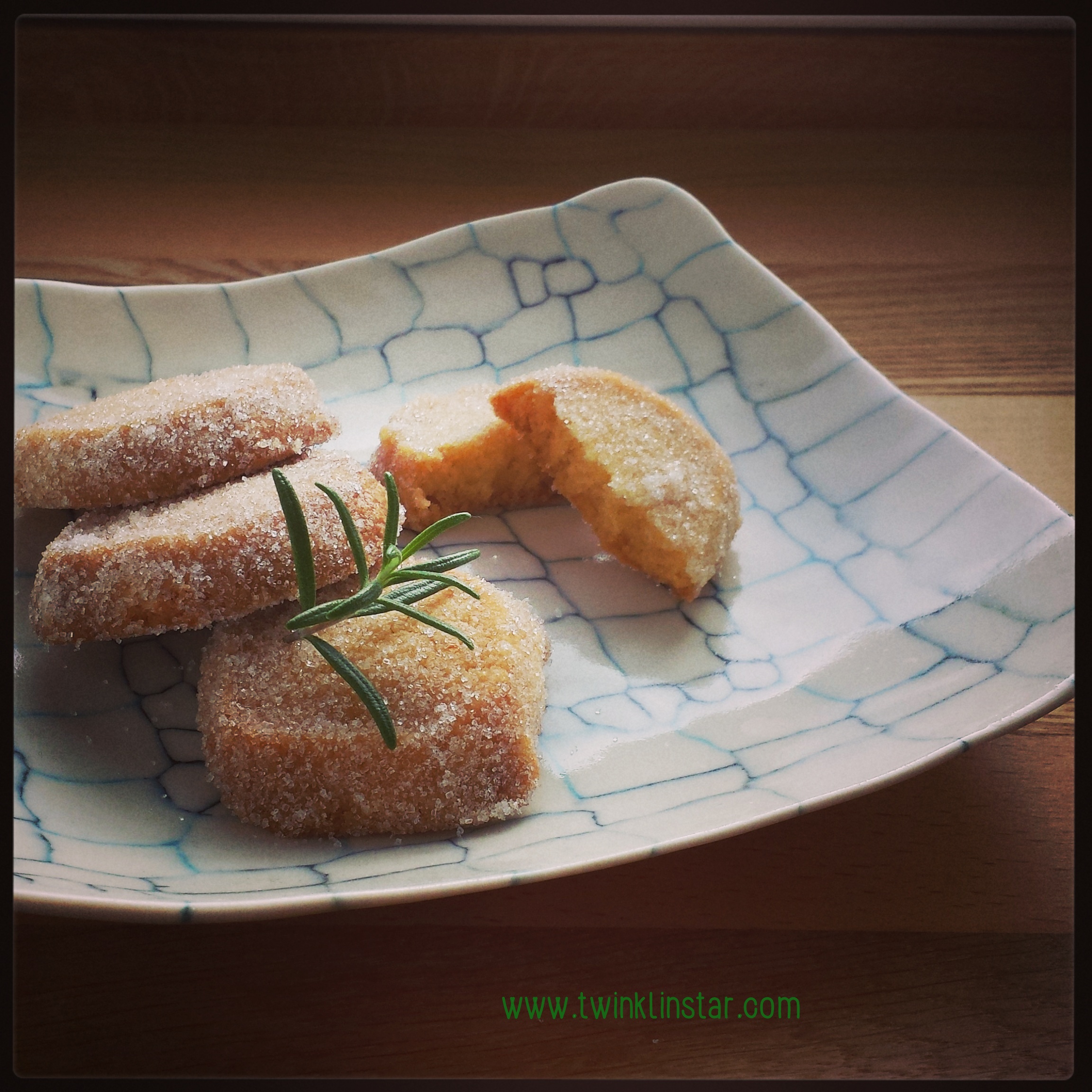 - Den Rosmarinsirup habe ich in doppelter Menge bereits am Vorabend hergestellt und die Rosmarinnadeln bis zum nächsten Tag darin ziehen lassen. Kurz vor dem Servieren habe ich die Mischung dann in eine dekoratives Glas abgeseiht.