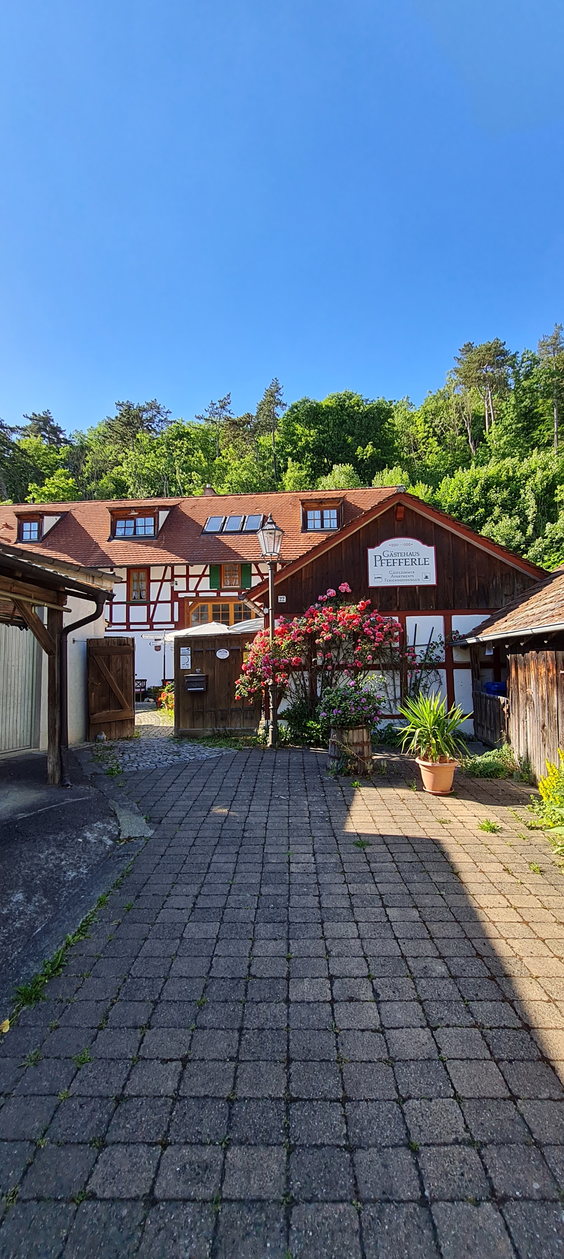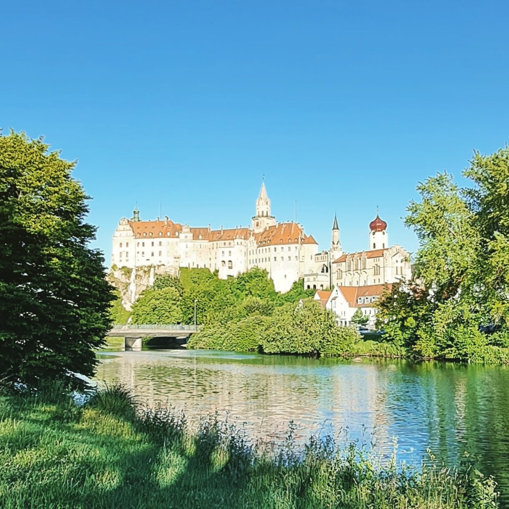Nach einem richtig steilen Anstieg nach Inzigkofen ging es dann hinunter nach Sigmaringen. Wir hatten uns dort eine Übernachtungsmöglichkeit vorab ausgeguckt in einem richtig schnuckeligen Gästehaus. Nach einer ausgiebigen Dusche, um die Muskeln zu lockern und das Sonnenschutz-Schweiß-Gemisch loszuwerden, sind die Eltern und ich in die Stadt gegangen. Das Schloss haben wir uns aufgrund der Uhrzeit nur von außen angesehen, es war dennoch ziemlich eindrucksvoll, was in den letzten Jahrhunderten auf dem Felsen oberhalb der Donau alles so gebaut wurde….