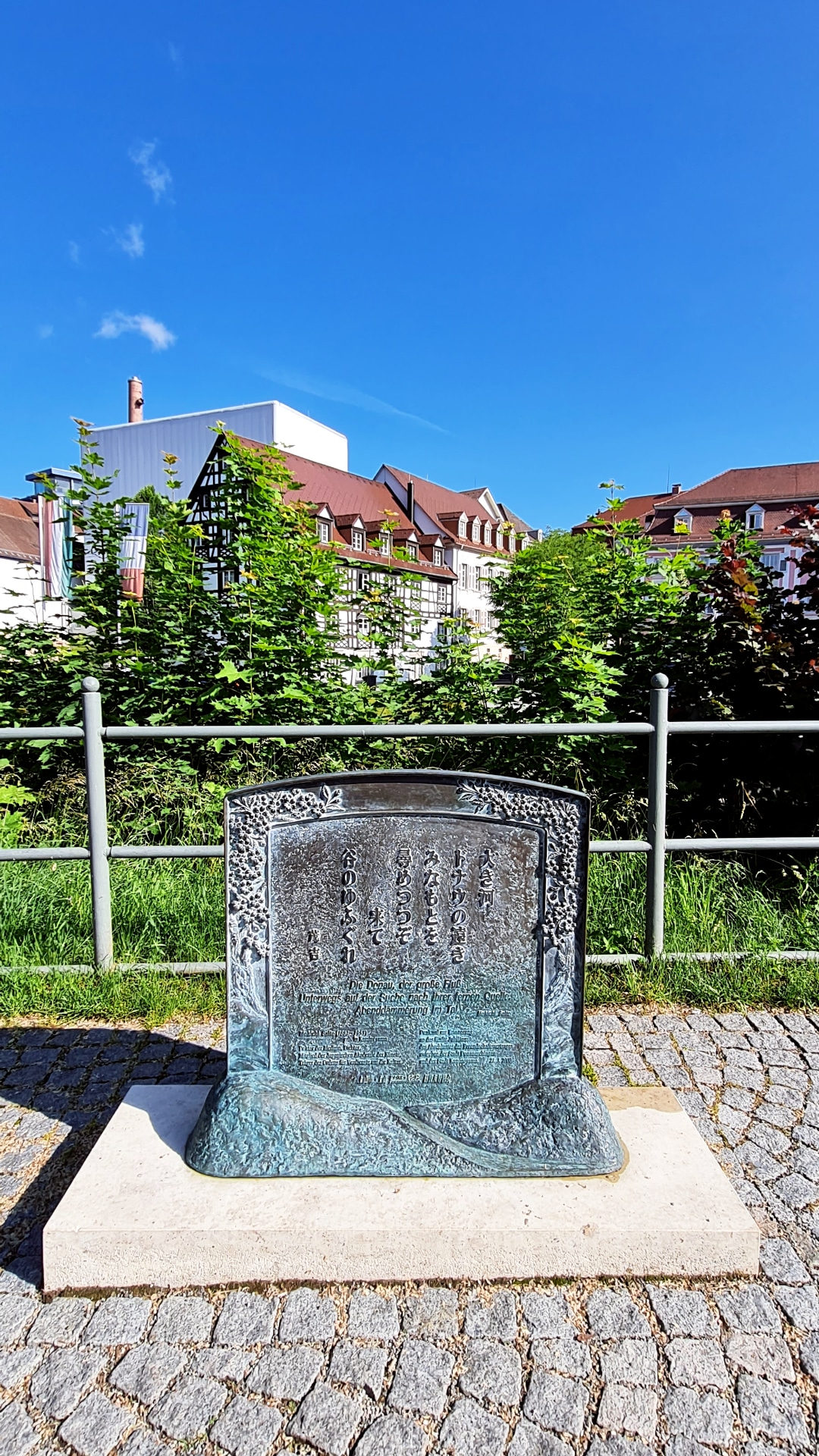 Auf dem Weg vom Bahnhof zum Startpunkt des Donauradwegs kreuzt eine Brücke einen der beiden Quellflüsse der Donau – die Brigach. Hier findet sich eine Stele mit einem Haiku von Mokichi Saito, einem der bedeutendsten japanischen Dichter des 20. Jahrhunderts. Mit seiner Heimatstadt Kaminiyama verbindet Donaueschingen seit 1995 eine Städtepartnerschaft.