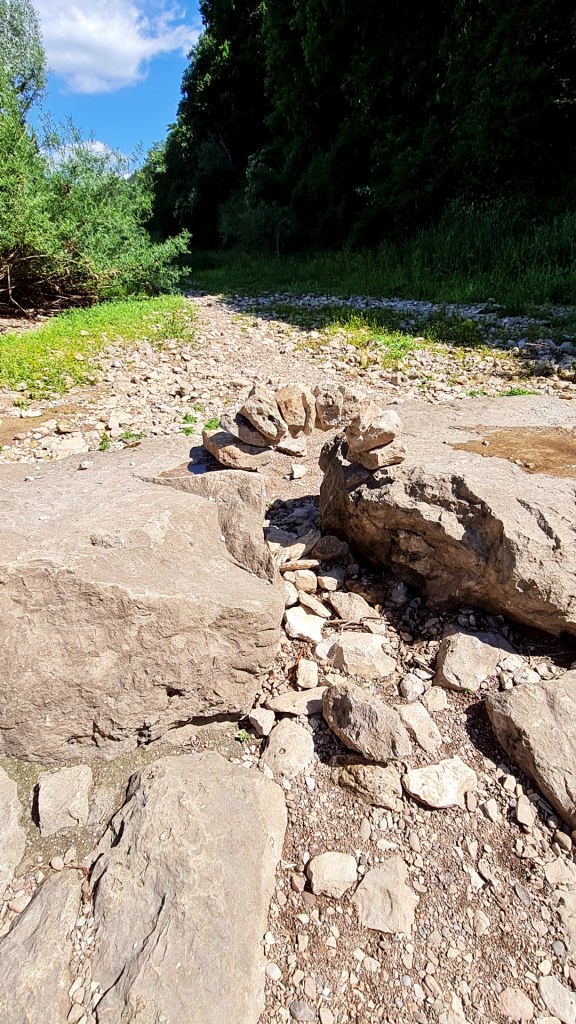 Erstes Highlight ist die Donauversickerung bei Fridingen. Erstaunlich – vor 150 Jahren versickerte die Donau erstmals, während heute im Sommerhalbjahr das Flussbett für mehrere Kilometer ausgetrocknet ist. Der Grund hierfür liegt im Untergrund – die schwäbische Alb besteht aus kalkigen Gesteinsschichten.Durch chemische Lösungsprozesse an der Oberfläche wie auch im Untergrund kommt es innerhalb des Kalkgesteins zur Ausbildung von Spalten und Hohlräumen, in denen das Donauwasser verschwindet. Der poröse Untergrund sorgt auch dafür, dass sich im Gestein Dolinen bilden – ausgeschwemmte Hohlräume, die immer wieder einstürzen. Ungefähr 60 Stunden nach dem Verschwinden von der Oberfläche kommt das Donauwasser um 183 Höhenmeter tiefer und etwa 12 km Luftlinie entfernt im Aachtopf, der größten Quelle Deutschlands, wieder zum Vorschein. Über den kleinen Fluss Aach gelangt das Wasser in den Bodensee und somit über den Rhein in die Nordsee.