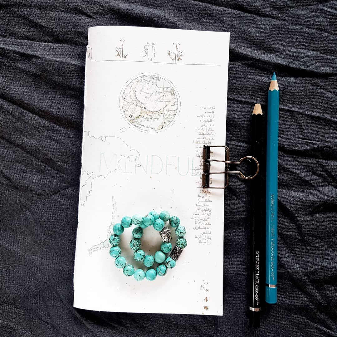 Werbung ohne Auftrag. Ich liebe die Produkte von Ali Edwards sehr. Besonders die Stempelsets und Online-Workshops ihrer Kooperation mit Laura Wonsik haben es mir in diesem Jahr angetan. Für dieses kreative Tagebuch habe ich vor allem mit dem Stempelset „Mental health matters“ gearbeitet, aber auch Produkte der monatlichen Story Kits habe ich hier eingesetzt. Ich bin gerade in einen neuen Lebensabschnitt gestartet, den ich in diesem Minialbum im Travellers Notebook Format festhalten möchte.