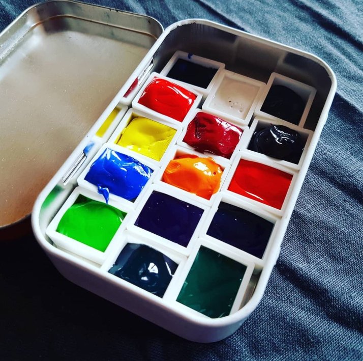 Für mich selbst habe ich mittlerweile 2 große (wie oben zu sehen mit 15 Farben) und zwei kleine (mit jeweils 6 Farben) Paletten in den Pastillendosen zusammen gestellt. Spätestens im August, wenn ich mit der gesamten Großfamilie an die Nordsee fahren werde, kommen diese mal wieder on the Road in Einsatz. Jedoch plane ich natürlich auch schon vorher wieder den ein oder anderen Ausflug. Eigentlich wollte ich ja dieses Jahr zum Japanfest nach Düsseldorf fahren, aber dank OP musste ich dann doch darauf verzichten….